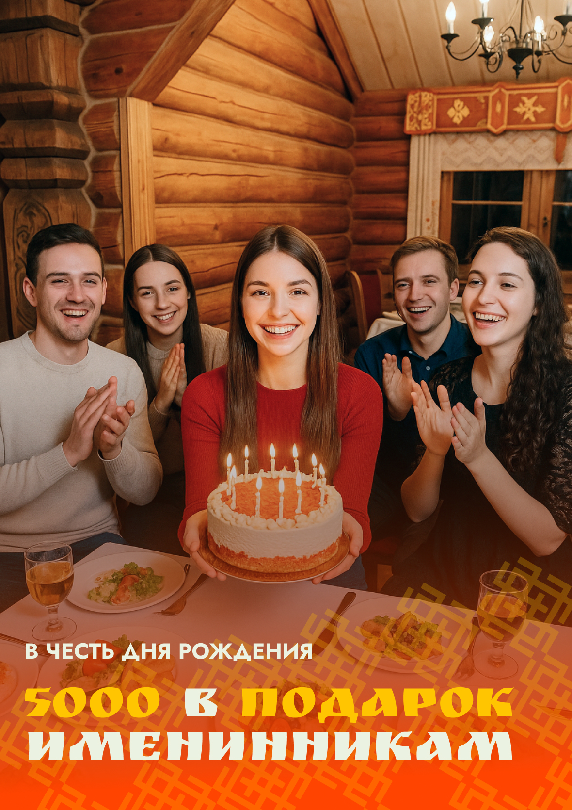 День рождения — это особый праздник! В честь важного события «Русская Деревня» дарит вам 5000 бонусов, чтобы ваш день был ещё ярче и приятнее!